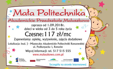 Mała Politechnika - Akademickie Przedszkole Maluszkowo ogłasza nabór dla dzieci w wieku od 3 do 5 roku życia.